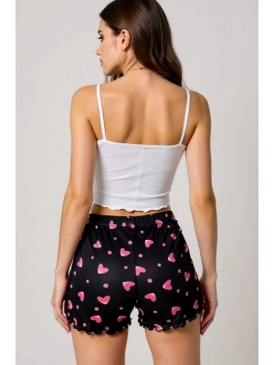 Kalp Desenli Askılı Şortlu Pijama Takımı