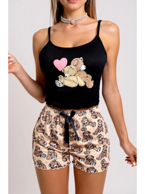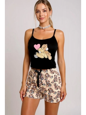 Renkli Ayıcık Desenli Askılı Şortlu Kadın Pijama Takımı