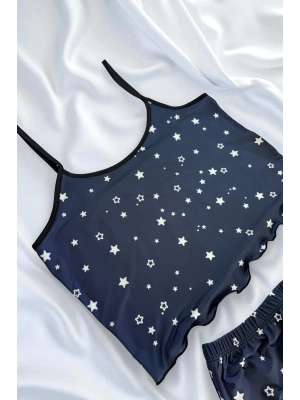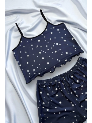 Yıldız Desenli Lacivert Şortlu Pijama Takımı