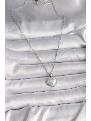 316l Çelik Gümüş Renk Zincir 3d İnci Kalp Model Kadın Kolye - Bamido
