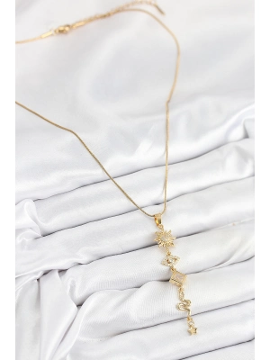 316l Çelik Zirkon Taşlı Güneş Ve Ay Enerji Model Gold Renk Kadın Kolye - Bamido