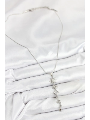 316l Çelik Zirkon Taşlı Güneş Ve Ay Enerji Model Gümüş Renk Kadın Kolye - Bamido