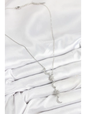 316l Çelik Zirkon Taşlı Güneş Ve Ay Model Gümüş Renk Kadın Kolye - Bamido