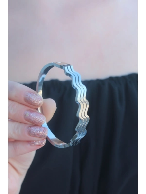 316l Kararmaz Çelik Gümüş Renk Dalga Model Kelepçe Kadın Bileklik - Bamido