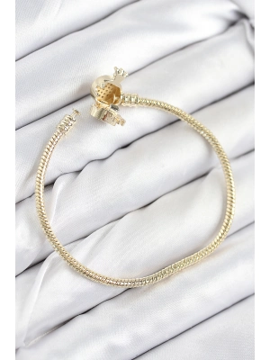 Pirinç Charm Zirkon Taşlı Taç Model Gold Renk Kadın Bileklik - Bamido