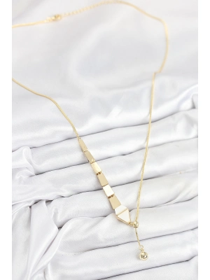 Pirinç Zirkon Taşlı Su Yolu Damla Model Gold Renk Kadın Kolye - Bamido