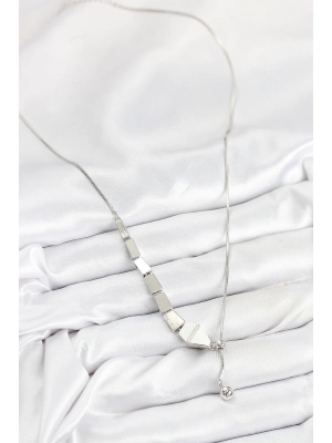 Pirinç Yılan Model Gümüş Renk Asansörlü Kadın Kolye - Bamido