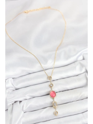 Pirinç Zincir Pembe Gold Renk Zirkon Taşlı Y Kolye - Bamido