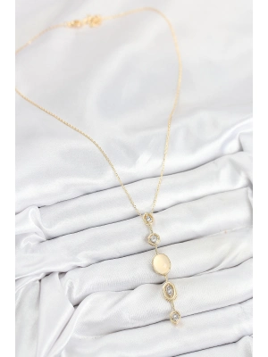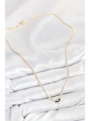 Pirinç Zirkon Taşlı Su Yolu Göz Model Gold Renk Kadın Kolye - Bamido