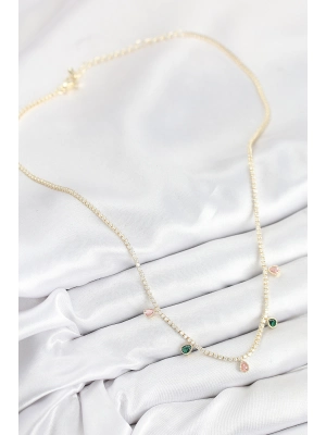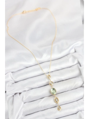 Pirinç Zincir Yeşil Gold Renk Zirkon Taşlı Y Kolye - Bamido