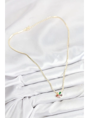 Pirinç Zirkon Taşlı Su Yolu Asorti Çiçek Model Gold Renk Kadın Kolye - Bamido