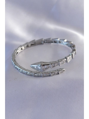 Vıp Seri Yılan Model Gümüş Renk Kadın Kelepçe Bileklik - Bamido