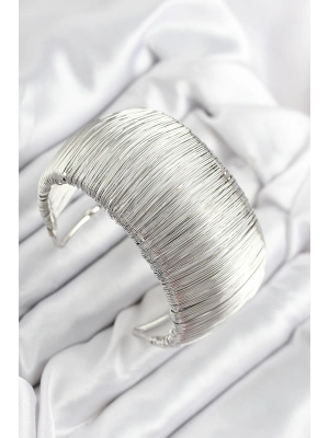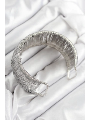 Pirinç Tel Sarma Model Gümüş Renk Kadın Bileklilk - Bamido