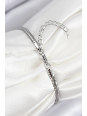 Pirinç Zirkon Taşlı Su Yolu Model Gümüş Renk Kadın Bileklik - Bamido