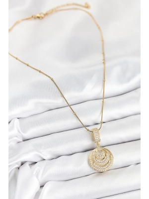 316l Çelik Zirkon Taşlı Çember Model Gold Renk Kadın Kolye - Bamido