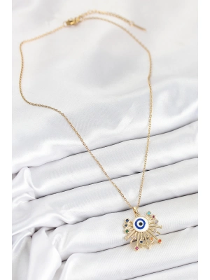 316l Çelik Zirkon Taşlı Nazar Model Gold Renk Kadın Kolye - Bamido