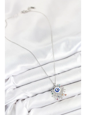 316l Çelik Zirkon Taşlı Nazar Model Gümüş Renk Kadın Kolye - Bamido