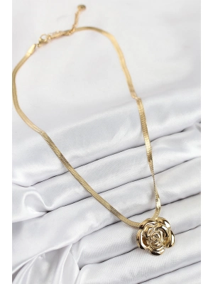 316l Çelik Gül Figürlü İtalyan Zincir Model Gold Renk Kadın Kolye - Bamido