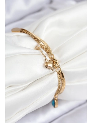 316l Çelik Nazar Boncuğu Ve Zirkon Taşlı Kalp Model Gold Renk Kadın Bileklik - Bamido