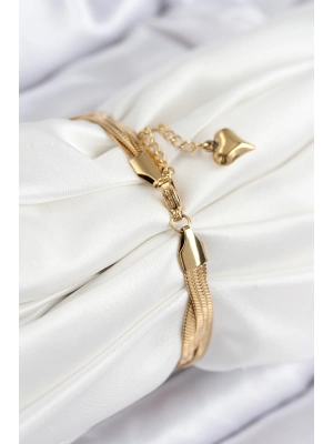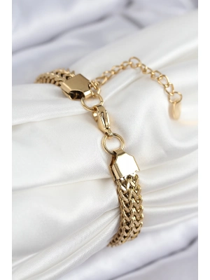 316l Çelik Örme Zincir Model Gold Renk Kadın Bileklik - Bamido