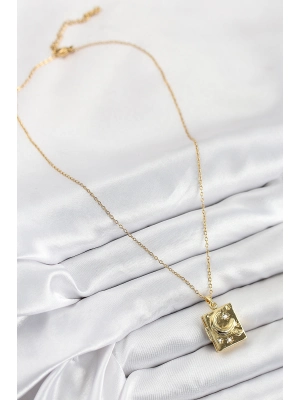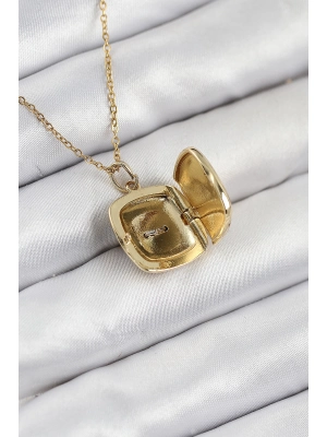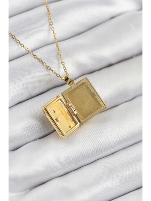 316l Çelik Zirkon Taşlı Açılabilr Kapaklı Kitap Model Gold Renk Kadın Kolye - Bamido