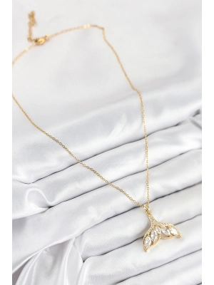 316l Çelik Zirkon Taşlı Balık Kuyruğu Model Gold Renk Kadın Kolye - Bamido