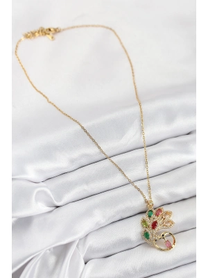 316l Çelik Zirkon Taşlı Tavus Kuşu Model Gold Renk Kadın Kolye - Bamido