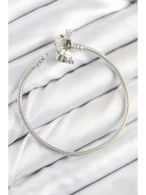 Pirinç Charm Zirkon Taşlı Taç Model Gümüş Renk Kadın Bileklik - Bamido