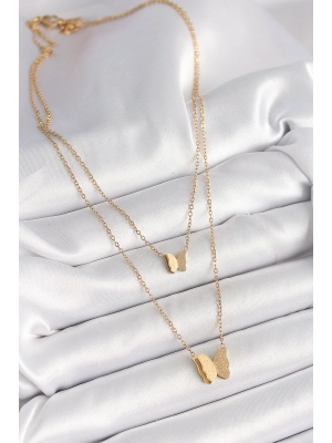 316l Çelik Gold Renk 2'li Simli Kelebek Model Kadın Kolye - Bamido