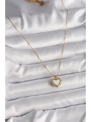 316l Çelik Gold Renk Zincir Sedefli Kalp Model Kadın Kolye - Bamido