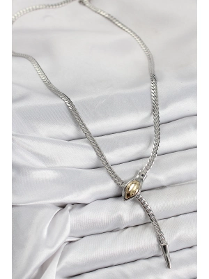 Pirinç Asansörlü Yılan Model Gümüş Renk Kadın Kolye - Bamido