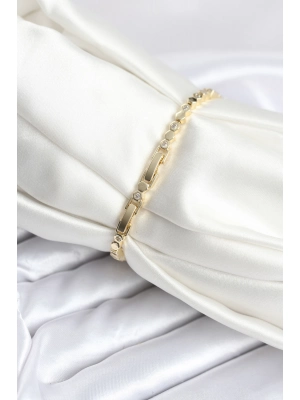 Pirinç Gold Renk Nokta Model Zirkon Taşlı Kadın Bileklik - Bamido