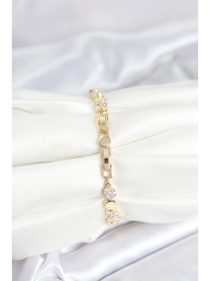Pirinç Gold Renk Zincir Model Zirkon Taşlı Kadın Bileklik - Bamido