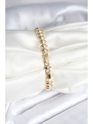 Pirinç Gold Renk Zirkon Taşlı Baklava Model Kadın Bileklik - Bamido
