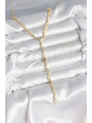 Pirinç Gold Renk Zirkon Taşlı Kadın Kolye - Bamido