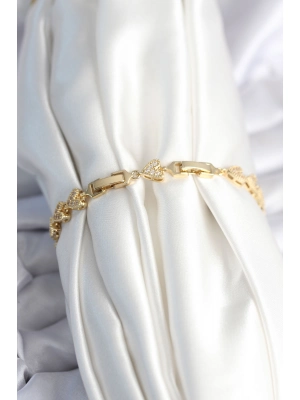 Pirinç Gold Renk Zirkon Taşlı Kadın Bileklik - Bamido