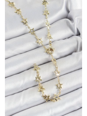 Pirinç Gold Renk Yıldızlı Kadın Y Kolye - Bamido