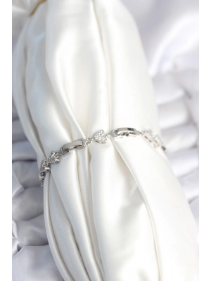 Pirinç Gümüş Renk Kalp Model Kadın Bileklik - Bamido