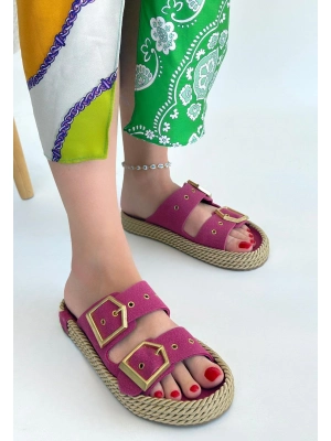 Loera Pemba Nubuk Çift Tokalı Terlik - Bamido