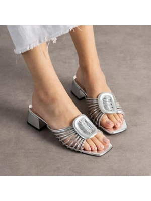 Anca Gümüş Rugan Topuklu Terlik - Bamido