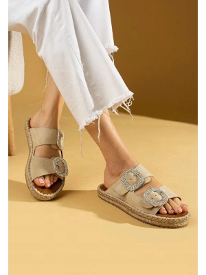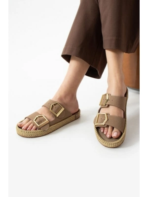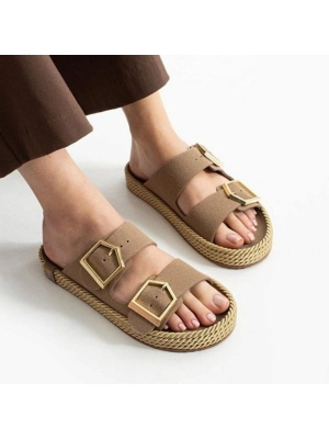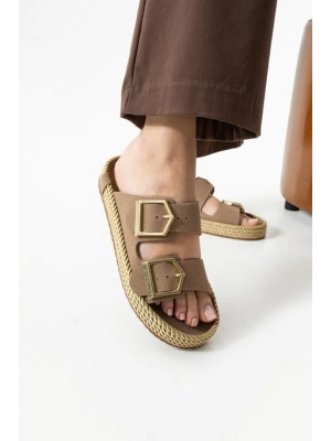 Loera Vizon Nubuk Çift Tokalı Terlik - Bamido
