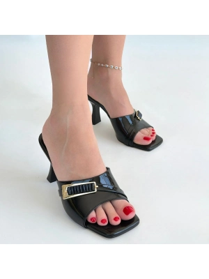 Miyon Siyah Cilt Topuklu Terlik