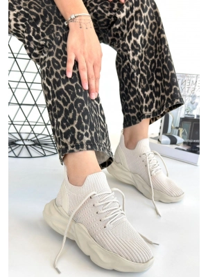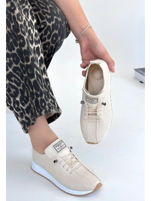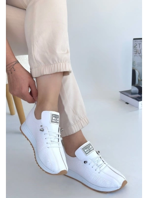 Monya Beyaz Cilt Bağcıklı Spor Ayakkabı - Bamido