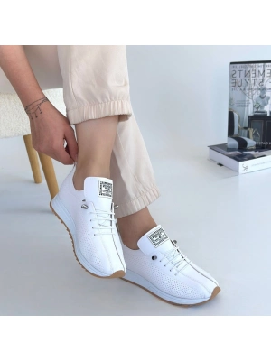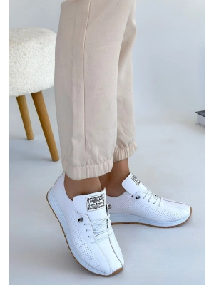 Fiert Beyaz Cilt Bağcıklı Spor Ayakkabı - Bamido