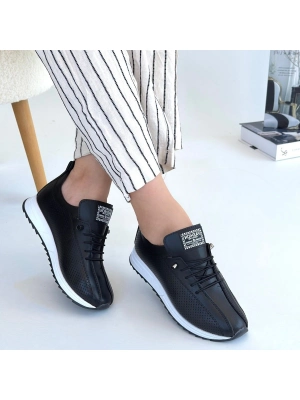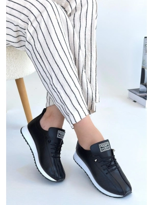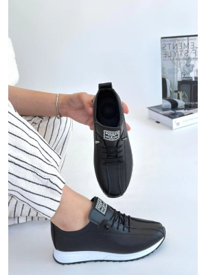 Fiert Siyah Cilt Bağcıklı Spor Ayakkabı - Bamido