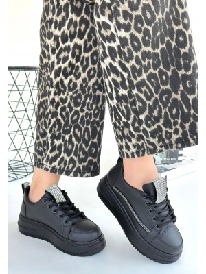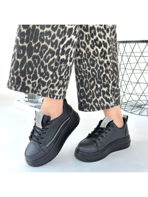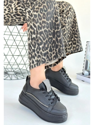 Leope Siyah Cilt Bağcıklı Spor Ayakkabı - Bamido