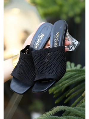 Akva Siyah Triko Şeffaf Topuklu Terlik - Bamido