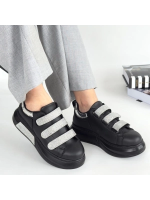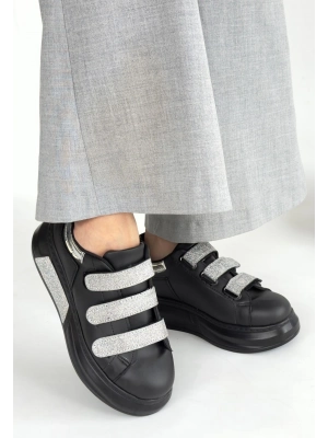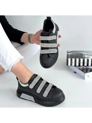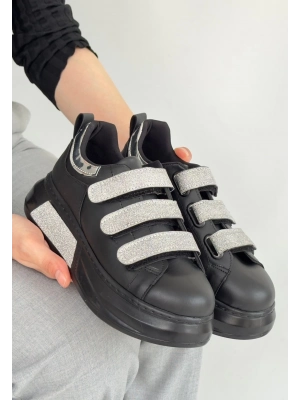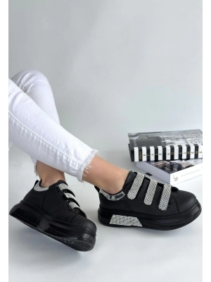 Elika Siyah Cilt Simli Cırt Cırtlı Spor Ayakkabı - Bamido