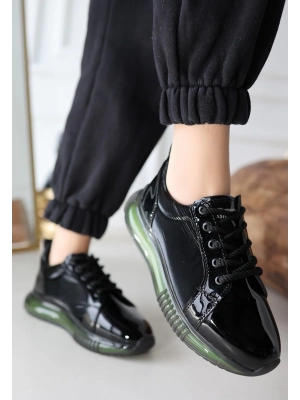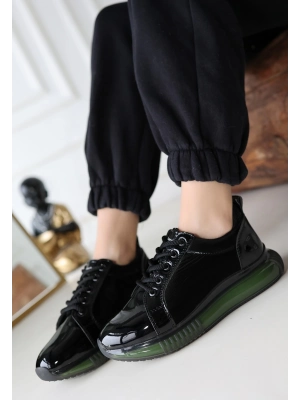 Piona Siyah Rugan Yeşil Tabanlı Spor Ayakkabı - Bamido
