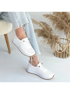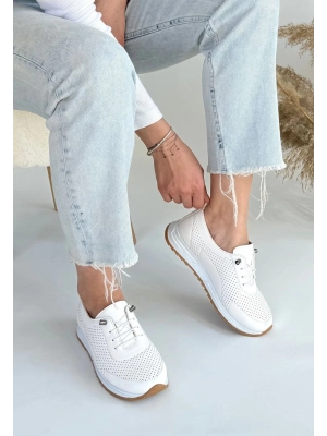 Tone Beyaz Cilt Bağcıklı Spor Ayakkabı - Bamido